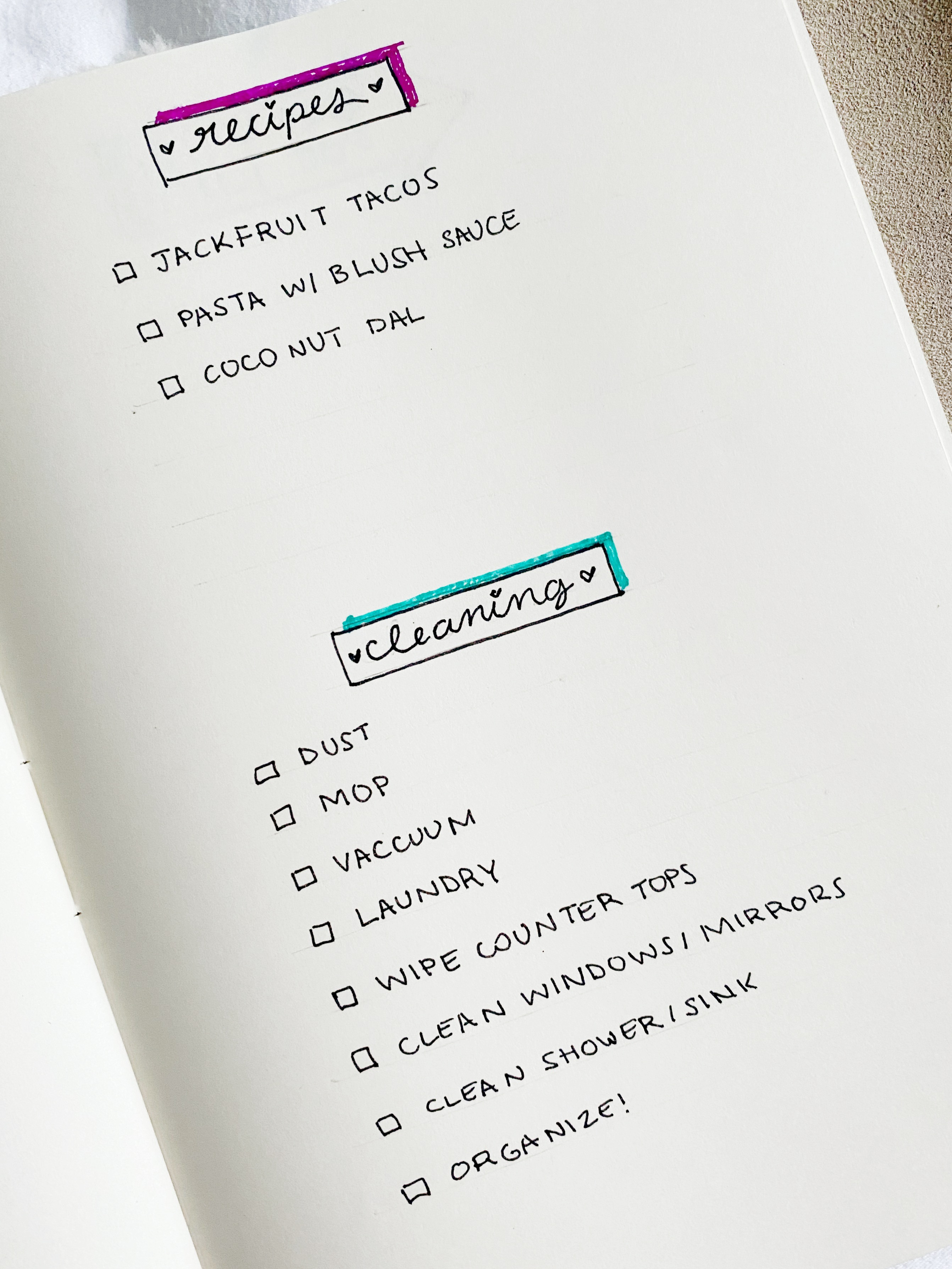 As I mentioned above, I am absolutely the WORST about believing I’ll remember everything I need to get done in my head, not writing it down, and inevitably forgetting. In the past, I’ve written stuff down on all kinds of random lists with absolutely NO structure of any kind — which makes it easy to lose track of things. In the past, I’ve kind of mixed my “shopping list” in with my “to-do list”, but I feel it’ll be way more organized to keep them separate. This way, I can keep everything I need to go out and purchase in one place, and know exactly what it is I still need to buy.